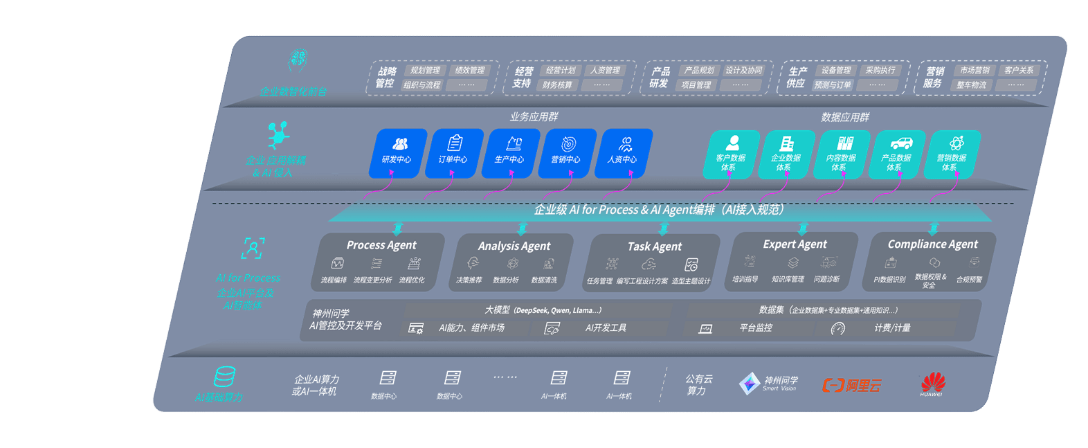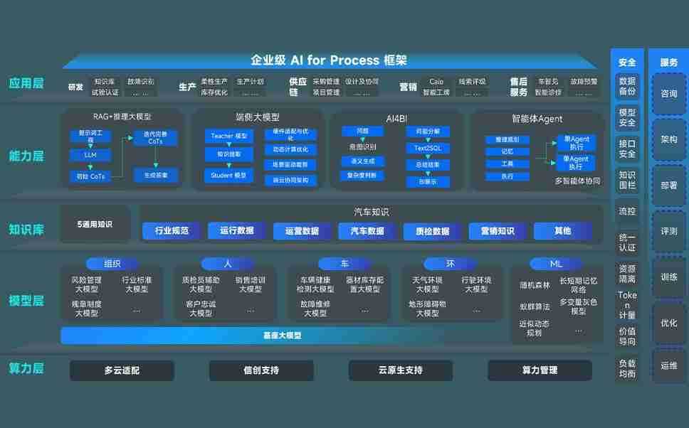 豪门国际问学智车解决方案是一套基于AI技术的汽车行业智能化系统,,,,覆盖从底层算力到顶层AI应用的全栈方案。。。。方案由算力层、、模型层和应用层组成:算力层,,,方案支持多种一体机配置,,具备云端灵活部署、、、、多云适配以及动态优化计算资源的能力;模型层,,,豪门国际问学平台版提供了企业级AI应用一站式构建与管理平台,,支持基于后训练强化技术的汽车企业专属模型的训练、、、、评测和运营;应用层,,,豪门国际问学DeepSeek版提供包括超级员工、、智能招采、、、智能营销、、、、智能客服、、、AI for BI等一系列解决方案,,可助力汽车行业实现数字化转型,,,,让管理更智能、、、响应更敏捷。。